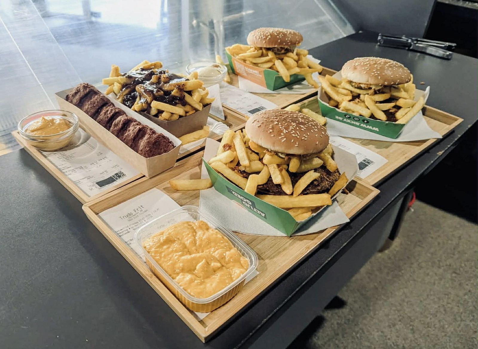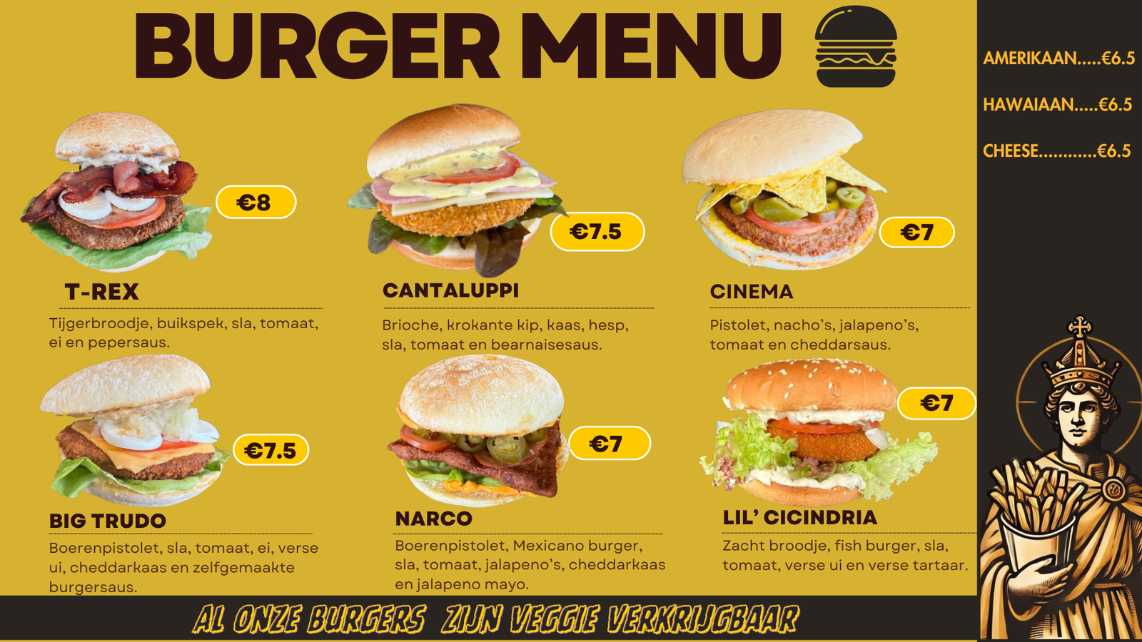 Fritten niet te ver, goed gebakken en lekkere burgers. Meer dan voldoende hoeveelheid geserveerd door goedlachs personeel!